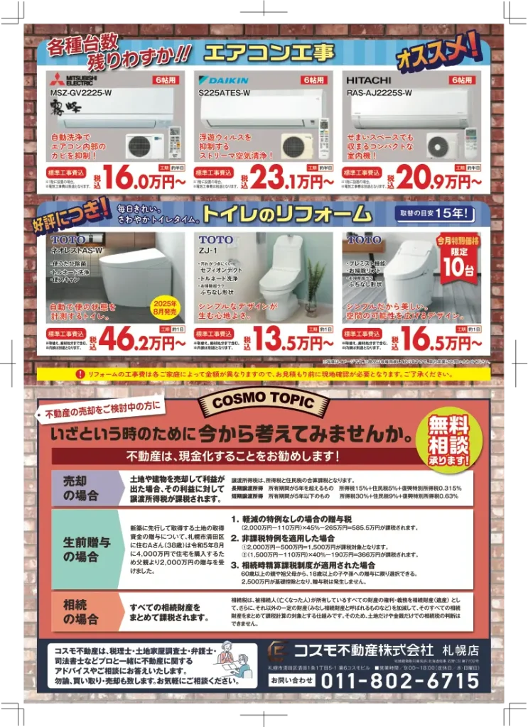 チラシ2ページ目には、エアコンやトイレのお得な情報がありますので、こちら↓のチラシをぜひご覧ください!