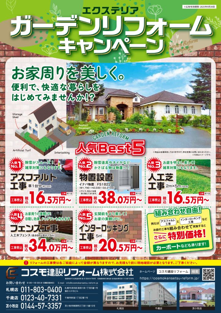 なお、キャンペーン期間中は、お庭の工事を組み合わせることでさらにお得になりますので、ぜひチラシをご覧ください。